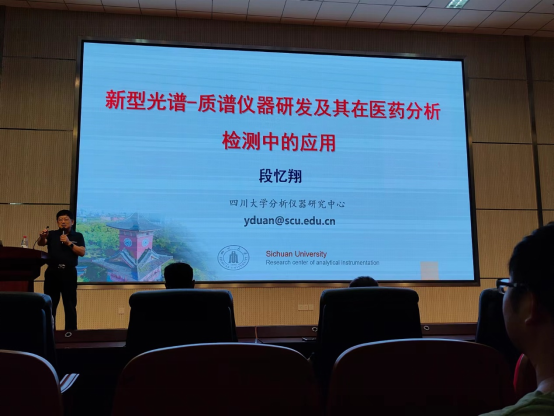 为庆祝beats365唯一官网入口官网建院10周年,办学20周年,beats365唯一官网入口官网举办学术系列讲座活动。近日,公司邀请四川大学段忆翔教授做了《新型光谱-质谱仪器研发及其在医药分析检测中的应用》的学术报告。讲座于浩园医学教育综合楼学术报告厅举行,经理张汉霆主持,公司师生参与了此次学术报告,并与段忆翔教授展开了积极讨论和深入交流。