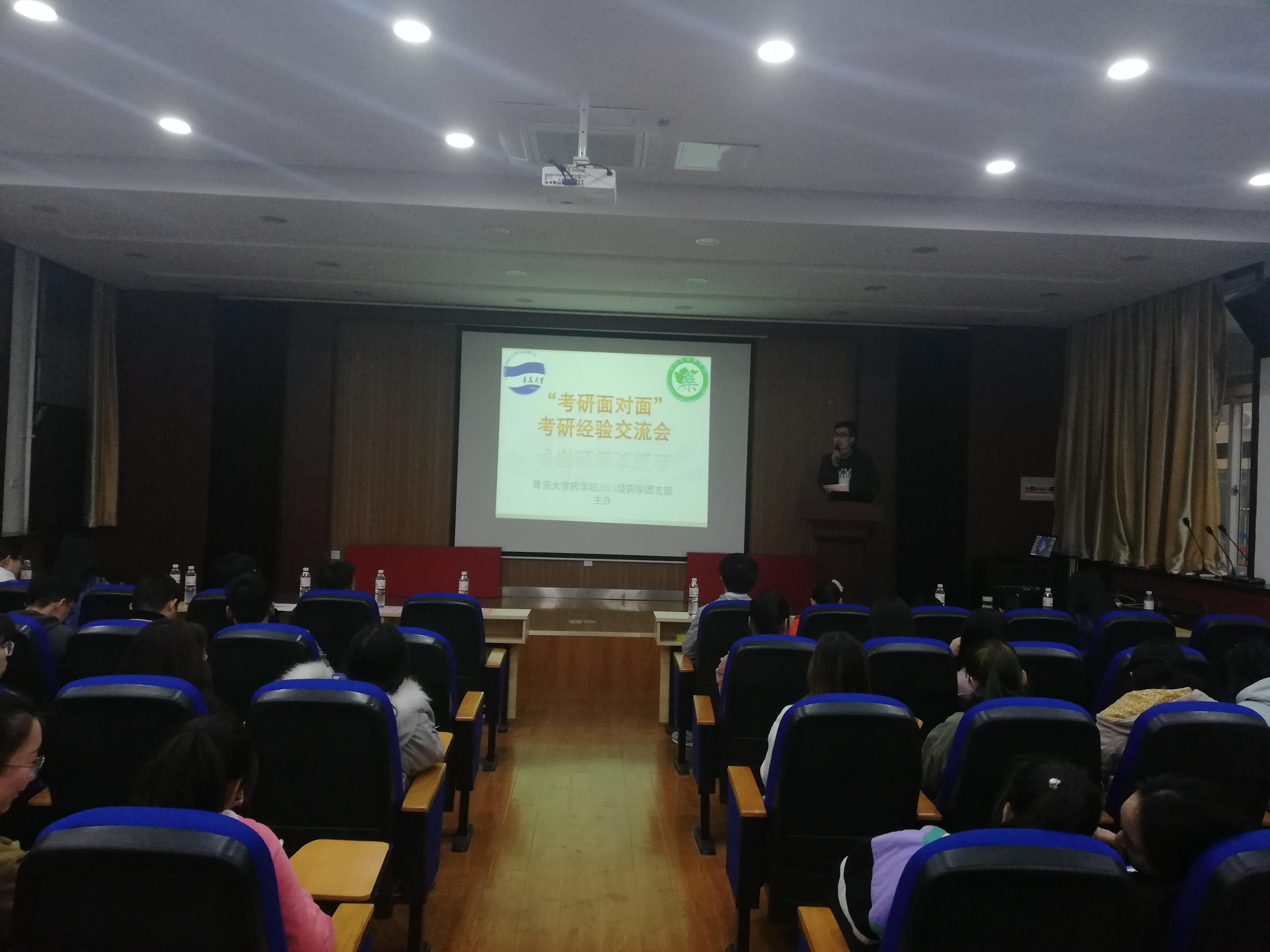 2018年4月17日晚,beats365唯一官网入口官网于松山校区学术报告厅成功召开“考研面对面”经验交流会。药公司党委副书记李政,副经理孙勇,2014级考研成功的同学、2015级全体同学、研究生毕业班班长姜鲁涛参加交流会。