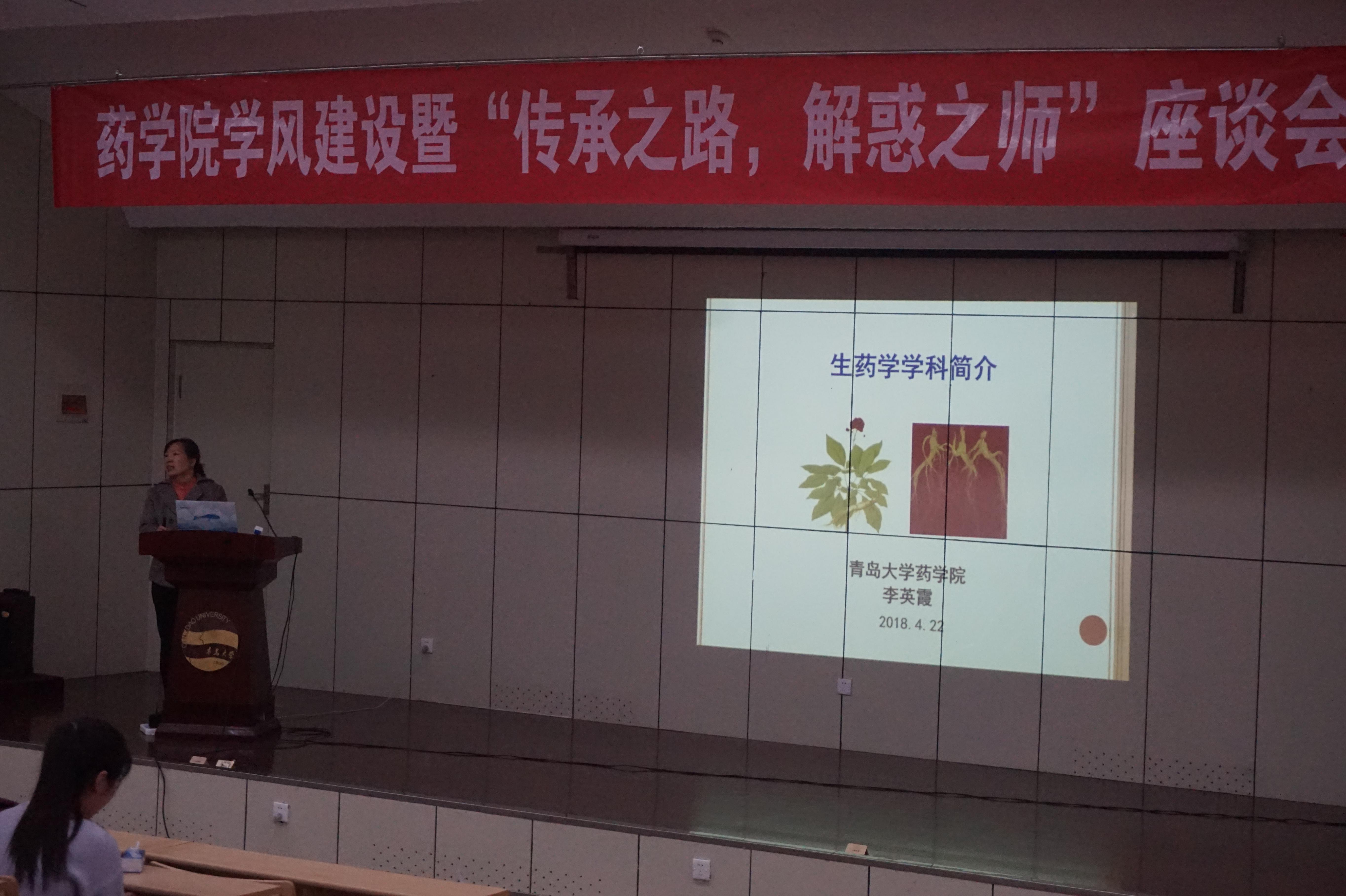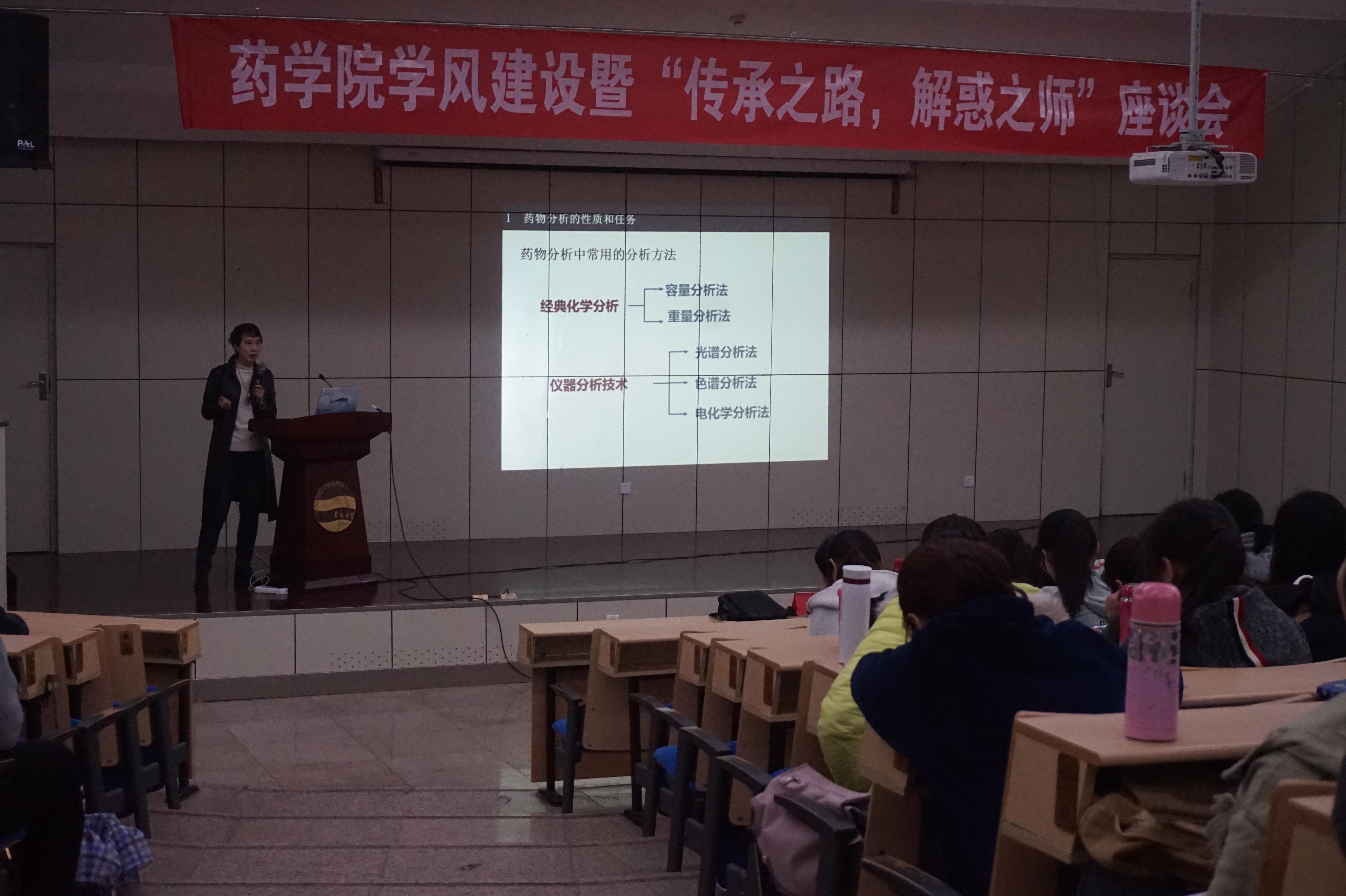 2018422日上午900,beats365唯一官网入口官网学风建设暨“传承之路,解惑之师”第二场座谈会在图书馆报告厅顺利召开。beats365唯一官网入口官网副教授王继波,教授李英霞,药物分析教研室主任刘坤受邀出席,beats365唯一官网入口官网辅导员雷舒涵及beats365唯一官网入口官网全体低年级员工参与此次会议。