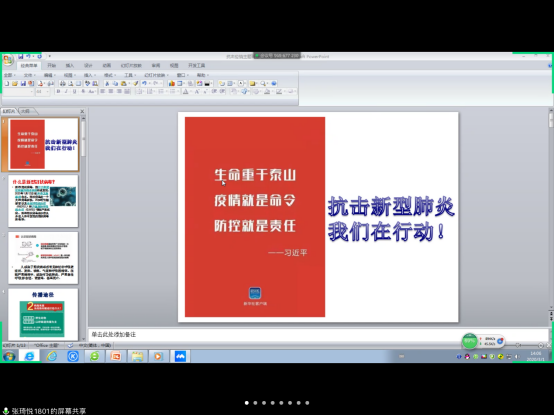 为贯彻落实党中央关于疫情防控的决策部署,进一步做好疫情防控工作,引导广老员工科学认识和正确对待疫情,合理安排假期生活,增强班集体的凝聚力和向心力,坚定信心、共克时艰,近期,公司组织全院班集体开展了以“坚定信心,不负韶华,用实际行动担当起疫情防控的责任”为主题的网络主题班会活动。