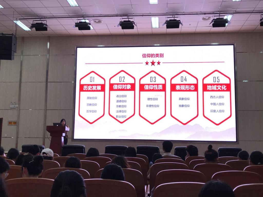 李延霞首先向同学们阐述了开展“青马工程”的重大意义和培养目标,随后紧紧围绕信仰这一主题,从什么是信仰、为什么要有信仰,信仰的类别,如何选择信仰,信仰的力量四个方面为同学们进行了生动全面的阐释,解释了为什么马克思主义经久不衰,为什么我们选择马克思主义信仰。她深情地说,我们何其有幸,生在这么伟大的新时代!未来属于青年,希望寄予青年。衷心希望同学们如习近平总书记在中国共产党成立100周年上的讲话中期望的那样,以实现中华民族伟大复兴为己任,增强做中国人的志气、骨气、底气,不负时代,不负韶华,不负党和人民的殷切期望!坚定信仰,砥砺品质,精业报国!