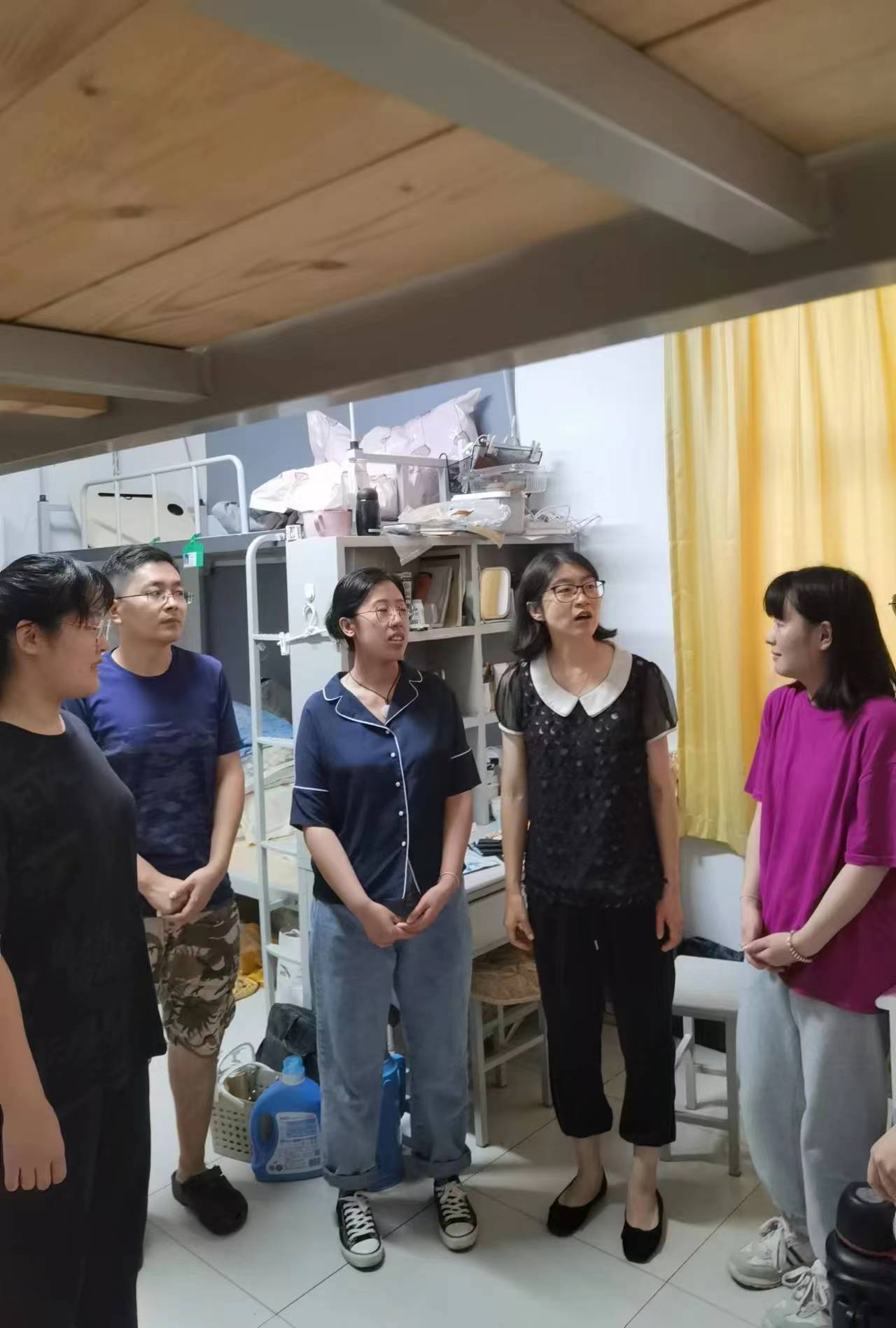 老师们亲切的与留校员工进行交流,深入的了解了大家的生活条件,学习环境,复习进展,考研目标;嘱咐大家规律作息,劳逸结合,注意饮食,以健康,积极的心态备战考研。同时,强调了暑假留校期间的安全问题及疫情防控要求,希望大家安全、平稳、高效的渡过暑假留校生活。