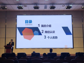 经前期初赛选拔,共有10位优秀学子脱颖而出,获得决赛资格。本次决赛主要包括两个阶段,第一阶段,10位参赛选手进行个人展示,通过生动的讲解,将自己的简历呈现给现场评委及观众。依据个人求职意向,参赛选手从个人信息、教育背景、科研能力、岗位理解等多方面对简历进行解读,每一份简历都具备独特构思、简洁明了,给现场评委留下了深刻印象。评委们从选手个人形象、语言表达能力、PPT内容等多方面展开评价,得分排名前六的选手成功晋级第二阶段比赛。
