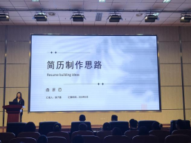 随后,田新宇为同学们上了一堂实操性很强的简历制作公开课。他从做简历的目的入手,让同学们了解简历制作的重要性。并根据各位参赛选手的简历制作情况,剖析简历制作的三个部分——我是谁、我想要什么、我能做什么,让同学们掌握了如何制作一份合适的简历。