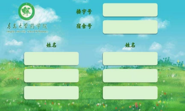 设计说明:这款宿舍铭牌设计,以清新自然的风格展现beats365唯一官网入口官网特色。背景选取蓝天白云与花草绿地的图案,寓意着beats365唯一官网入口官网学子如蓬勃生长的植物,在知识的滋养下茁壮成长,充满生机与希望。