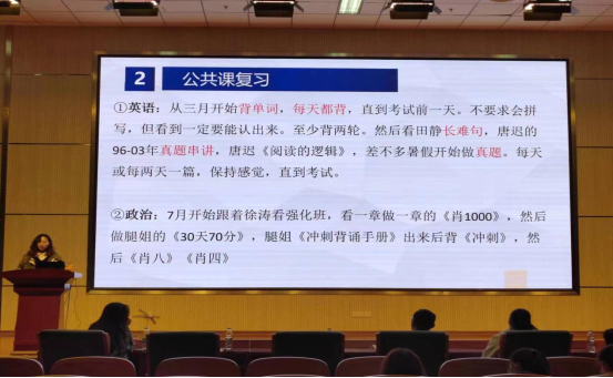 王申湛给同学们讲述了自己的考研经历,将自己摸索出的学习方法总结后,逐一进行讲解,为同学们提供最真实有力的经验方法。