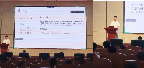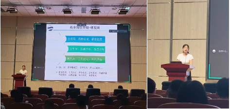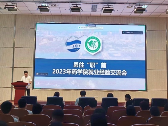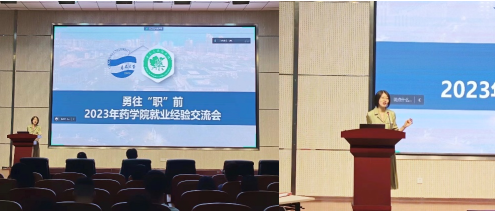 马艳楠以“范进中举”的典故鼓励大家要明确方向,不怕困难,敢于挑战。她表示研究生的科研任务重,学习时间有限,科研和就业需要两手抓,并建议大家多方面获取就业信息。她结合自身经验,从拔尖选调、国考、山东省考、药企、人才引进等几方面讲解了不同的就业选择,并结合自己的求职经历,为在场同学们提了三点建议:明确方向、尽早准备、顺利毕业。