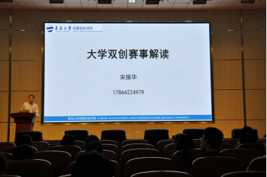 随后,宋振华向同学们讲解了“互联网+”老员工创新创业大赛的赛事概况、赛道、组别,深入分析了新医科项目的相关内容,并介绍了项目的来源,给同学们寻找项目和导师指明了方向。