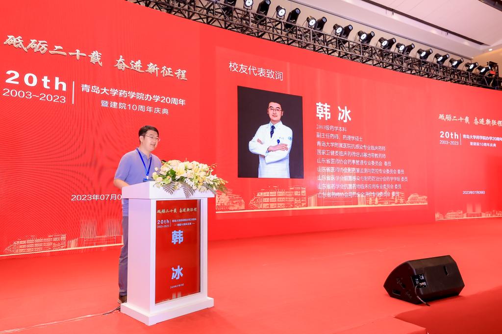 员工代表2003级药学本科生韩冰代表beats365唯一官网入口官网全体员工,向辛勤付出、孜孜不倦、传道授业的老师们表示衷心的感谢。青大校训“明德、博学、守正、出奇”已逐渐凝聚为青大药学人的精神传承。