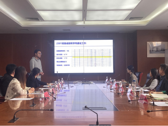 随后,班主任对过去一年的工作进行总结,就班级概况、员工思想教育工作、班级学风建设、专业建设等方面进行详细的汇报。