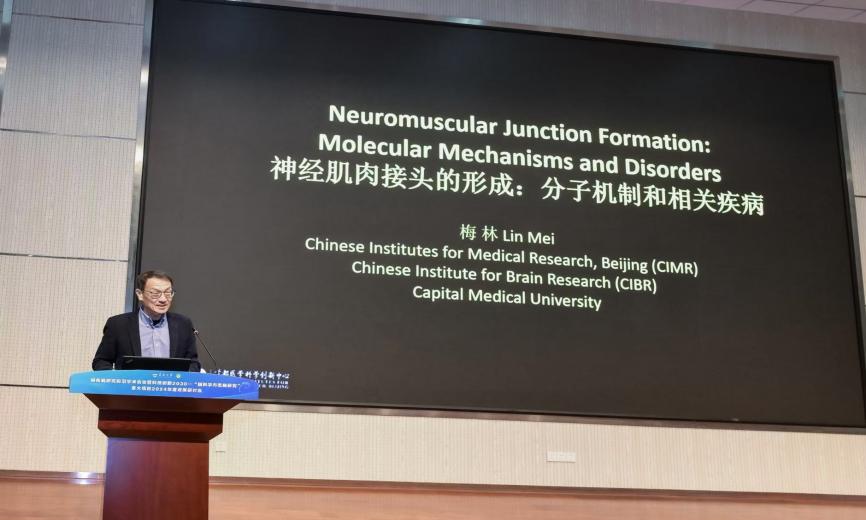 首都医学科学创新中心特聘研究员和创始主任、首都医科大学讲席教授梅林教授作了《Neuromuscular Junction Formation: Molecular Mechanisms and Disorders》的报告。神经肌肉接头是运动神经元与骨骼肌纤维之间的连接部位,它的形成是一个高度复杂和精细的过程。神经肌肉接头的形成机制及其相关疾病的研究对于神经科学和临床医学都有着重要意义。