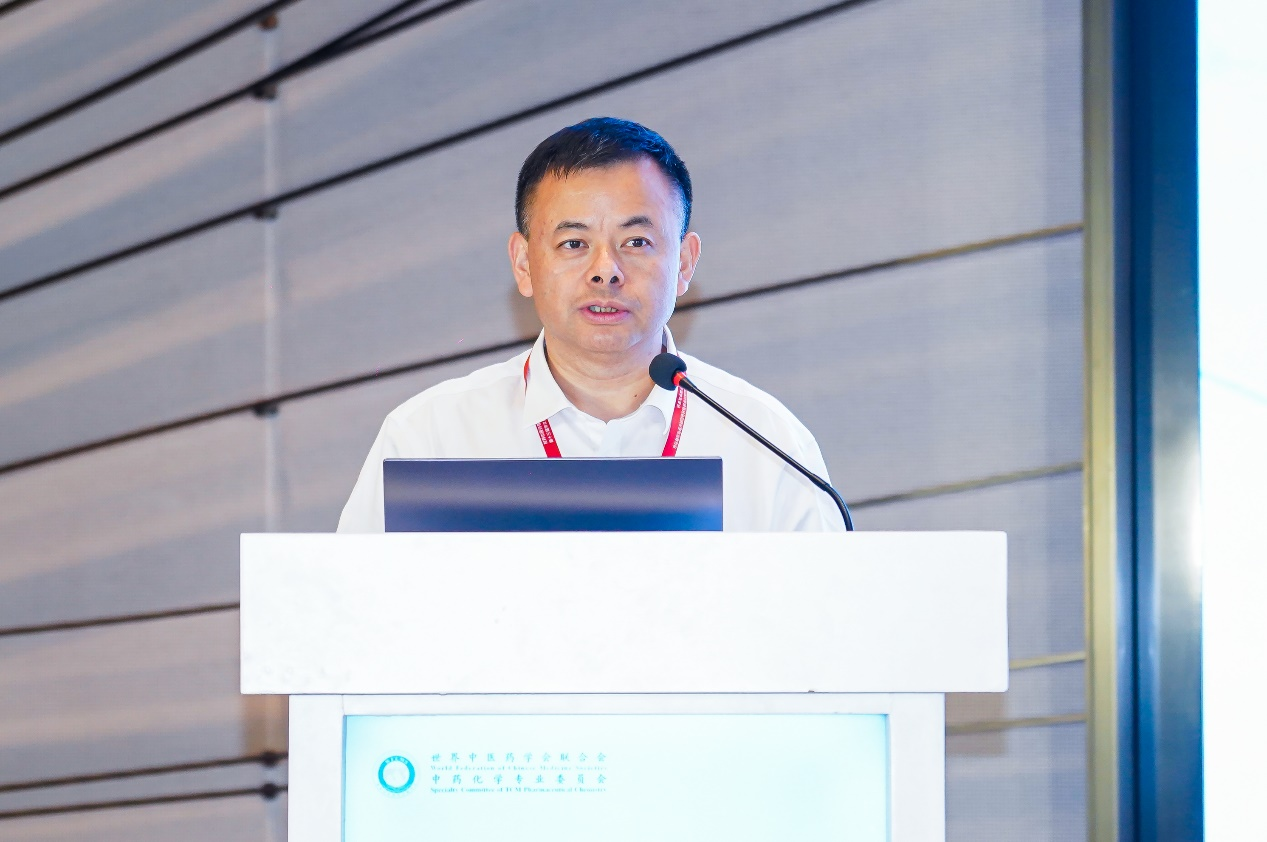 北京协和医公司庾石山研究员作题为《基于多学科前沿技术交叉的濒危动物药材高质量替代品创制》的专题报告;山东大学娄红祥教授作题为《巧用解毒机制发现新药》的专题报告;上海中医药大学王铮涛教授作题为《浅析中药化学学科定位与发展方向》的专题报告;中国科公司上海药物研究所丁侃研究员作题为《枸杞多糖靶标分子的发现及其机制》的专题报告;黑龙江中医药大学刘艳教授作题为《“龙九味”抗中枢神经退行性疾病功效物质及分子机制探究》的专题报告;华中科技大学张勇慧教授作题为《基于中药生物活性成分的新药发现》的专题报告;辽宁中医药大学窦德强教授(刘琳琳代)作题为《中药性味科学内涵探析》的专题报告;成都中医药大学韩波研究员作题为《药效物质的空间立体效应与成药性修饰研究》的专题报告;中国药科大学罗建光教授作题为《配体垂钓技术在中药活性成分发现中的应用》的专题报告;黑龙江中医药大学夏永刚教授作题为《中药多糖药效物质基础研究关键共性技术创新》的专题报告;沈阳药科大学李宁教授作题为《基于中药化学视角的珍稀濒危中药创新药研究与开发》的专题报告;湖南中医药大学王炜教授作题为《湖南特色中药民族药研究》的专题报告;天津中医药大学孙成鹏教授作题为《复合式靶标垂钓技术体系建立与应用》的专题报告;北京大学乔雪研究员作题为《中药活性成分的生物合成研究》的专题报告。