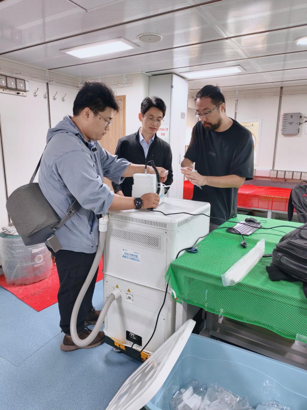 2025年10月10日上午,beats365唯一官网入口官网梁帅、丁薛璐团队的特种医学研究项目“面向远洋航海环境的人体呼出气监测系统开发及船员健康风险评估”的随船实时检测设备,随中国海洋大学“东方红3号”科考船共享航次顺利出港,启动为期35天的远洋船员人体呼出气实时监测任务。该项目致力于研发适用于远洋航海环境的无创、实时健康监测系统;通过本次远洋实验,项目团队将收集航海人员的呼出气关键数据,优化健康监测技术,为远洋环境下船员健康管理提供更加可靠的解决方案,为提升航海特种医学技术水平、保障船员健康提供科学支持。