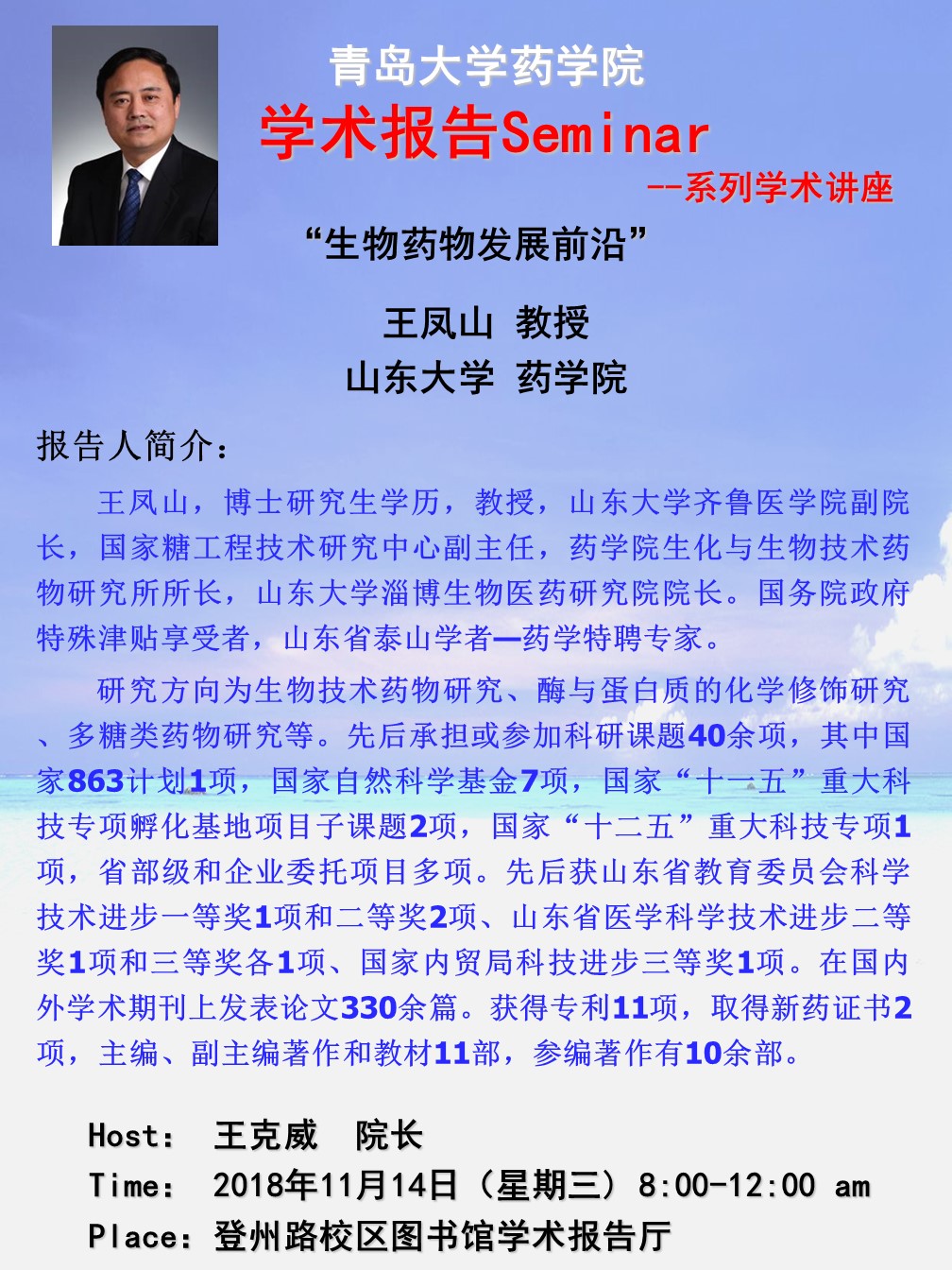 11月18日beats365唯一官网入口官网学术报告:王凤山