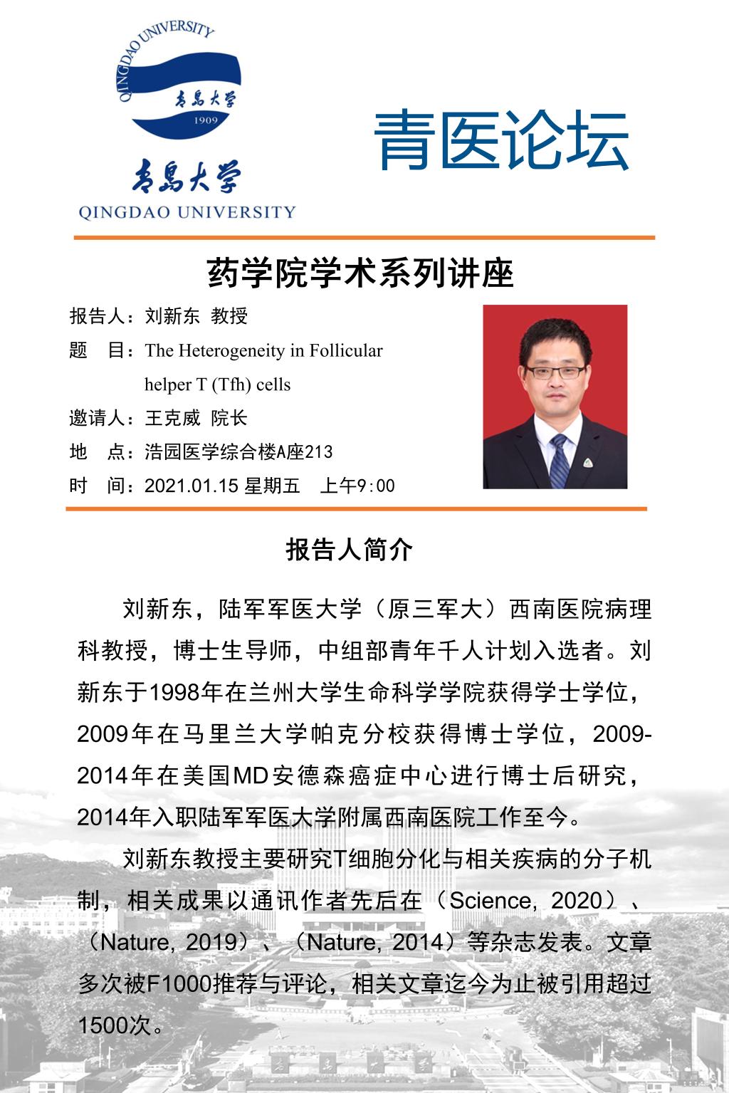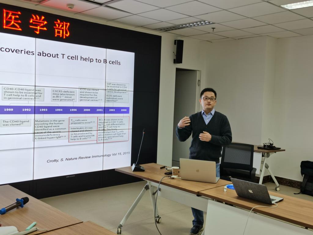 1月15日上午,医学部beats365唯一官网入口官网邀请陆军军医大学王岩教授和刘新东教授分别作了题为《Integrative Omics Analysis Reveals Contributions of Extracellular Microenvironment to Tumor Evolution And Prognosis of Multifocal Glioblastoma》和《The Heterogeneity in Follicular helper T (Tfh) cells》的学术报告,报告在浩园医学综合楼A座213会议室举行,会议由王克威经理主持。