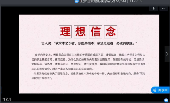 4月22日中午,beats365唯一官网入口官网员工党支部通过“钉钉”视频举办首届“员工党员讲党课”微党课大赛决赛。药公司党委副书记李延霞、辅导员胡芳、林欢及全体员工党员、全体入党积极分子观摩比赛并现场评分。