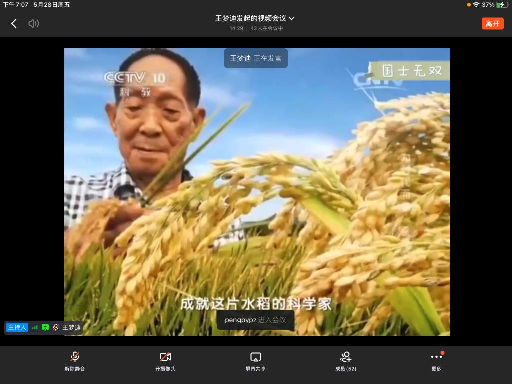 禾下乘凉梦,一稻一人生。为悼念“共和国勋章”获得者、中国工程院院士、杂交水稻之父袁隆平先生,推进“党史学习教育”专题,5月28日晚,beats365唯一官网入口官网员工党支部全体党员在线上观看了央视纪录片《为时代而歌:袁隆平》,再次回顾袁老一生的耕耘,深切缅怀袁隆平,向“国之脊梁”致敬。